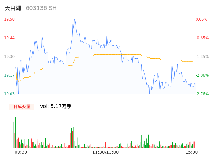 04月23日,天目湖收报19.11,股价涨幅-2.35%,成交金额9947.57万元,换手率2.77%。
