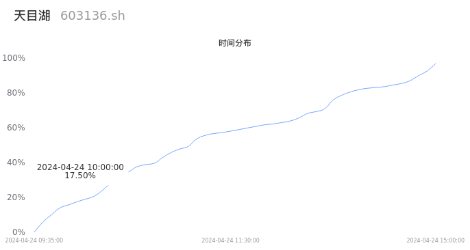 603136天目湖2024年04月24日成交5.32万手,成交金额1.03亿元,相较昨日放量1515手,换手率2.85%,成交清淡。