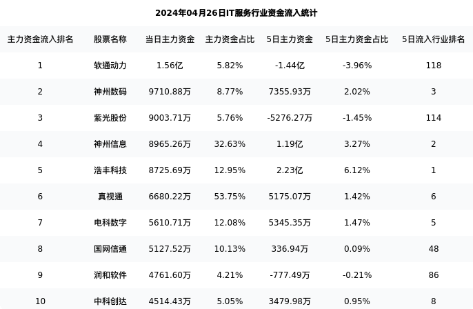 从主力资金流向来看,IT服务行业今日主力资金流入93.38亿元,在所有申万二级行业中排名:55/131。