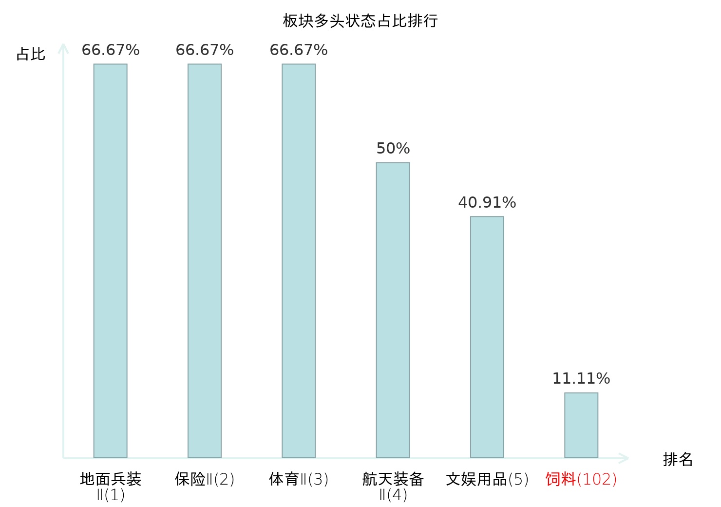 从主力宝信号数据分析,邦基科技所属的饲料板块中共2只股票处于主力多头状态,主力多头状态占比在全行业中排名第102位,较昨日上升2位。排名越高说明主力对于板块整体看多意愿越强;这表明主力对饲料板块的兴趣有所增加,可能为投资者提供一定的参考。全市场所有行业板块中主力多头状态占比排名中,地面兵装Ⅱ板块位居第一;专业连锁Ⅱ板块名次提升最快,较昨日上升102位。这些变动揭示了不同行业间主力资金偏好的变化,有助于投资者理解当前市场的动态和趋势。