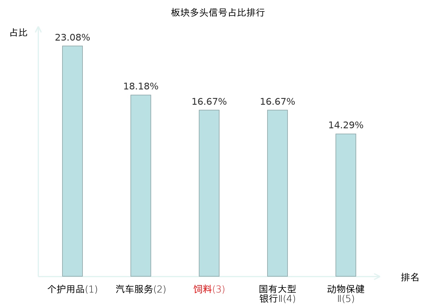 全市场所有行业板块中主力多头信号占比排名中,个护用品板块位居第一。国有大型银行Ⅱ板块名次提升最快,较昨日上升119位。