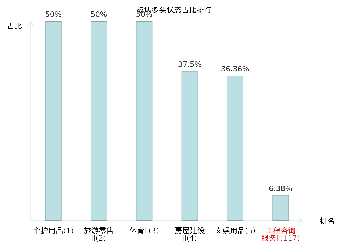 全市场所有行业板块中主力多头状态占比排名中,个护用品板块位居第一。焦炭Ⅱ板块名次提升最快,较昨日上升68位。