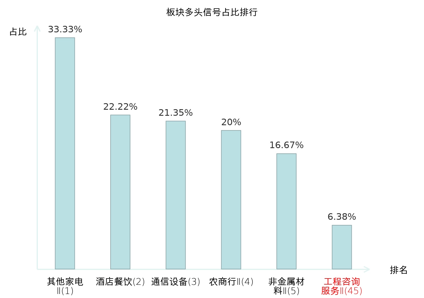全市场所有行业板块中主力多头信号占比排名中,其他家电Ⅱ板块位居第一。其他家电Ⅱ板块名次提升最快,较昨日上升128位。