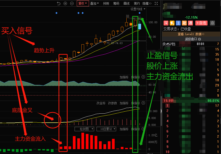 在早期阶段,该股呈现出上升趋势,底部金叉出现,主力资金转为流入,该股出现了多维共振的形态,