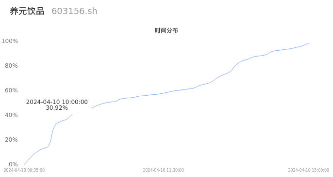 603156养元饮品2024年04月10日成交2.19万手,成交金额5577.56万元,相较昨日放量2422手,换手率0.17%,成交清淡。