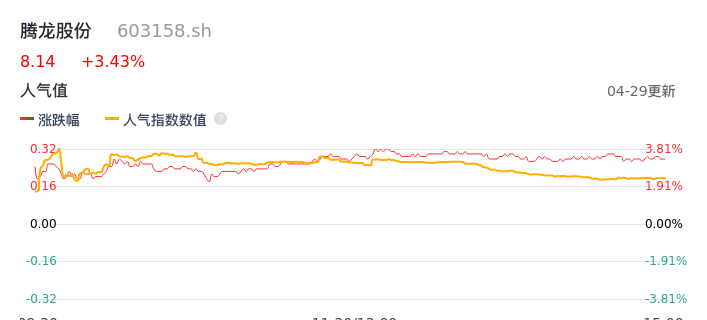 04月29日,腾龙股份收报8.14,股价涨幅3.43%,成交金额1.25亿元,换手率3.15%。