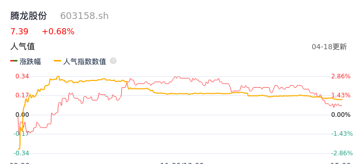 04月18日,腾龙股份收报7.39,股价涨幅0.68%,成交金额7636.88万元,换手率2.09%。