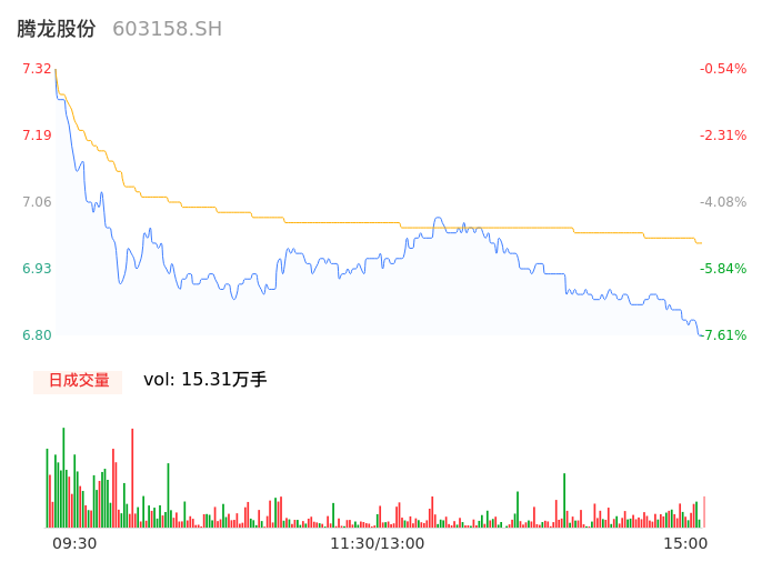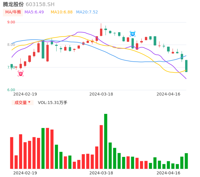 04月16日,腾龙股份收报6.80,股价涨幅-7.61%,成交金额1.07亿元,换手率3.12%。