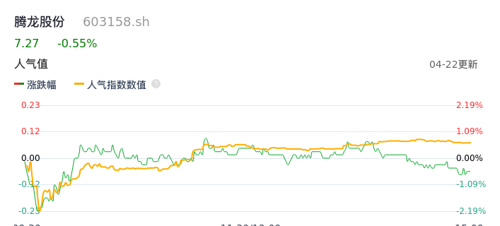 04月22日,腾龙股份收报7.27,股价涨幅-0.55%,成交金额5129.06万元,换手率1.43%。