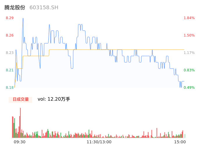 04月30日,腾龙股份收报8.18,股价涨幅0.49%,成交金额1.01亿元,换手率2.49%。