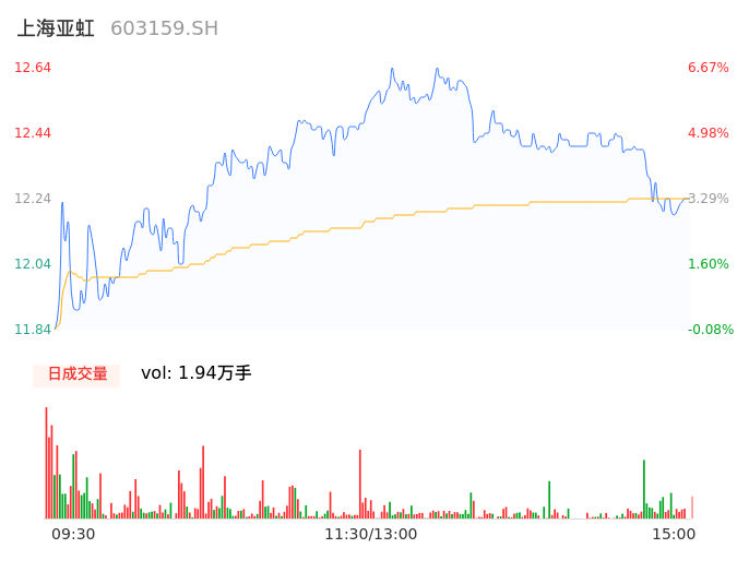 04月18日,上海亚虹收报12.24,股价涨幅3.29%,成交金额2388.85万元,换手率1.39%。
