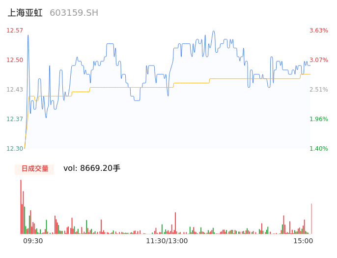 04月24日,上海亚虹收报12.53,股价涨幅3.30%,成交金额1080.81万元,换手率0.62%。