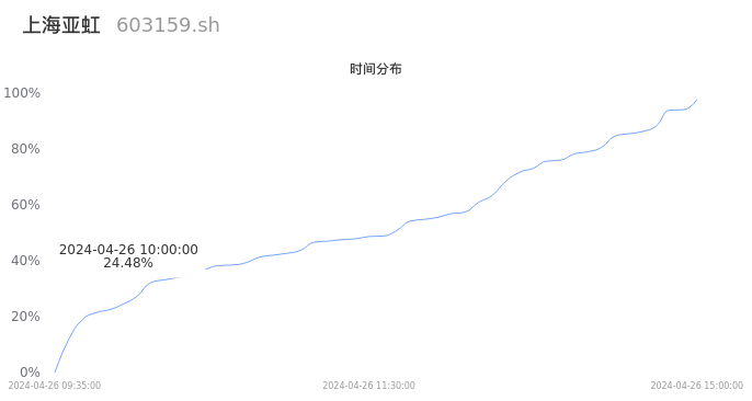 根据成交分布分析,该股票当天放量成交,成交清淡。时间上看,早盘前半小时成交量占据当天总成交量的24.48%;价格上看,成交呈现右偏峰。成交分布分析主要研究股票成交的分布特性,不具有预测功能,请知悉。