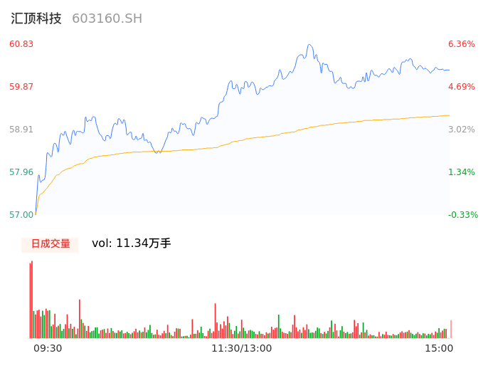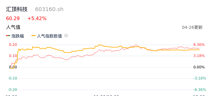 04月26日,汇顶科技收报60.29,股价涨幅5.42%,成交金额6.72亿元,换手率2.48%。