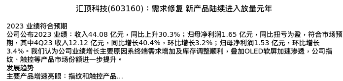 值得注意的是:2024年04月中金公司的臧若晨/贾顺鹤/彭虎分析师,首次发布关于汇顶科技的研究报告,标题为:汇顶科技(603160):需求修复 新产品陆续进入放量元年。