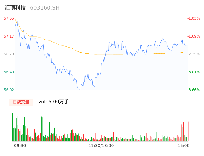 04月19日,汇顶科技收报56.99,股价涨幅-1.99%,成交金额2.84亿元,换手率1.09%。