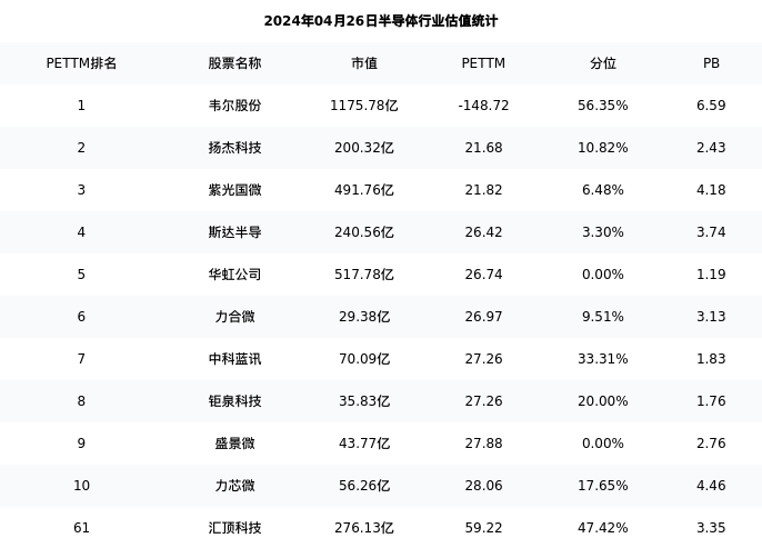 从估值角度看:汇顶科技最新市盈率PETTM为59.22,在行业内排名60/153,处于47.42分位。