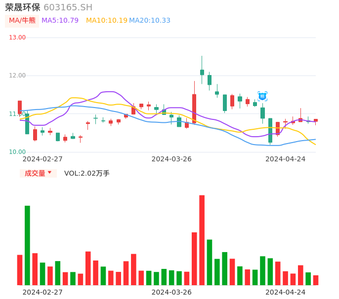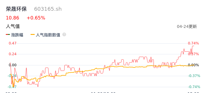 04月24日,荣晟环保收报10.86,股价涨幅0.65%,成交金额2179.63万元,换手率0.73%。