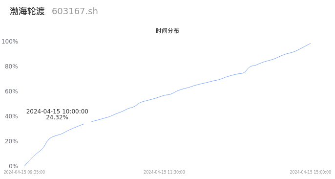 603167渤海轮渡2024年04月15日成交11.01万手,成交金额1.09亿元,相较昨日放量6906手,换手率2.35%,成交清淡。