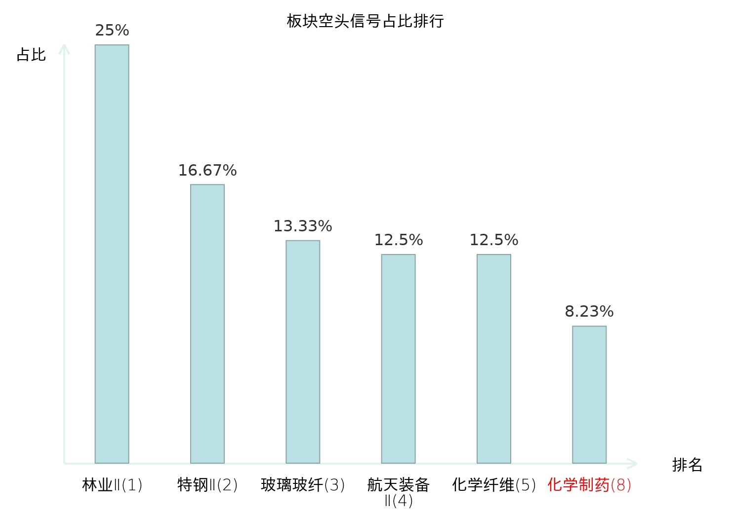 全市场所有行业板块中主力空头信号占比排名中,林业Ⅱ板块位居第一。其他电源设备Ⅱ板块名次提升最快,较昨日上升115位。