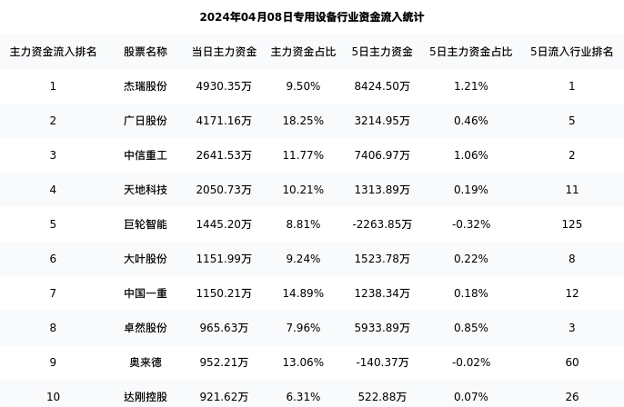 从主力资金流向来看,专用设备行业今日主力资金流入29.63亿元,在所有申万二级行业中排名:28/131。