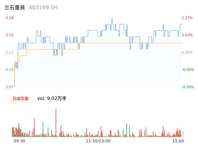 04月26日,兰石重装收报5.17,股价涨幅1.37%,成交金额4640.74万元,换手率0.69%。