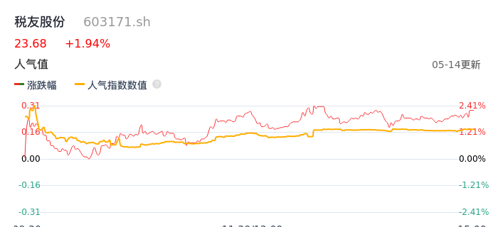 05月14日,税友股份收报23.68,股价涨幅1.94%,成交金额3331.18万元,换手率1.56%。