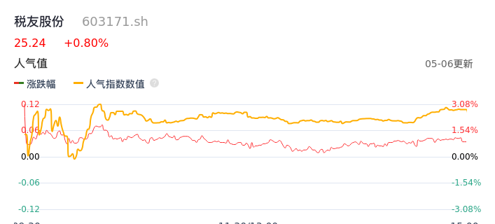 05月06日,税友股份收报25.24,股价涨幅0.80%,成交金额4690.14万元,换手率2.05%。
