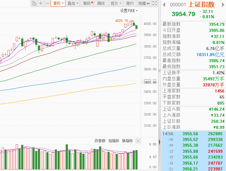 大盘分析及后市展望:全天市场呈现显著结构分化。上证指数受科技板块回调与权重股走弱拖累震荡下行,创业板指因核心成长标的承压跌幅明显,然而个股表现与指数形成强烈反差。盘中近3800 家个股上涨,国证2000指数与微盘股指数逆势走强。这与此前冲击4000点时“指数涨、个股不涨”的格局形成鲜明对比,本质是市场完成阶段性结构均衡调整。具体来看,科技板块内部分化剧烈。前期热门的算力硬件、存储芯片等方向集体下跌,权重科技股成拖累指数主力;而AI应用方向逆势走强,多股涨停,形成跷跷板效应。同时,因磷酸铁锂持续涨价以及反内卷显成效,新能源板块集体爆发,锂电细分概念涨幅突出;创新药板块因三季报同比增长70%而强势反弹;低位板块活跃支撑了个股普涨。