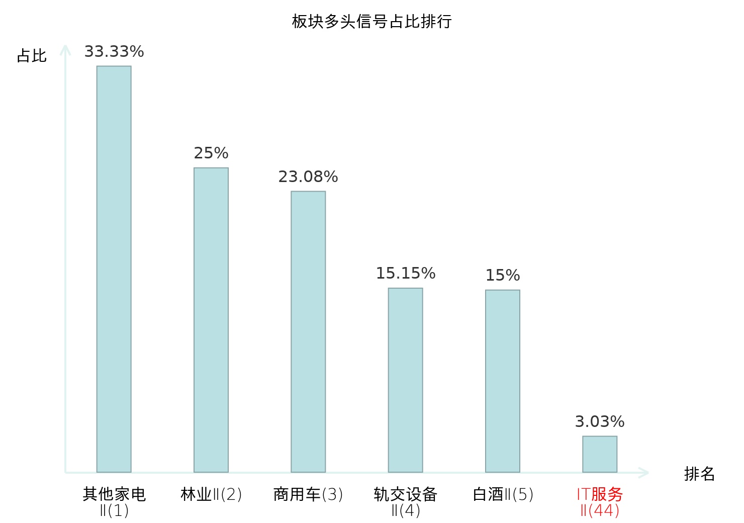 全市场所有行业板块中主力多头信号占比排名中,其他家电Ⅱ板块位居第一。其他家电Ⅱ板块名次提升最快,较昨日上升128位。