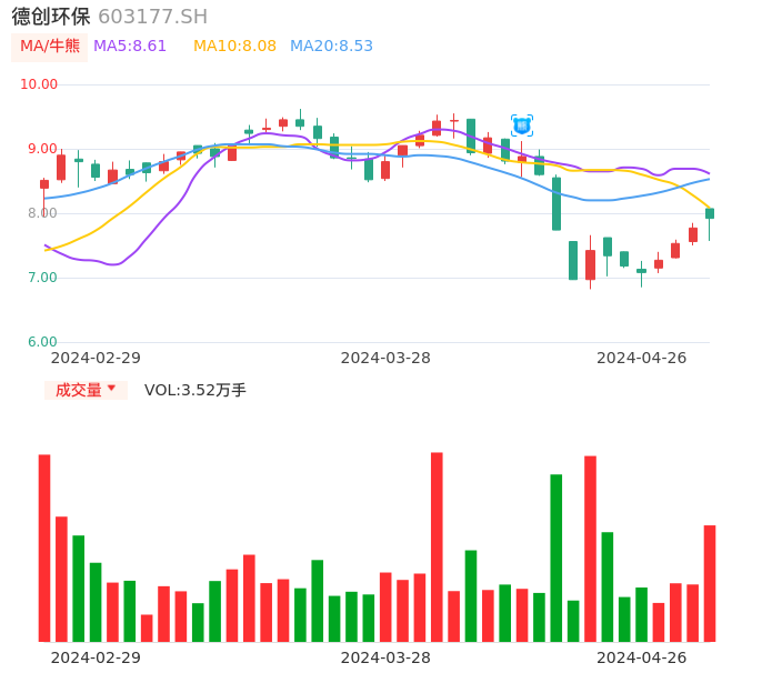 德创环保牛熊点指标分析报告-20240426