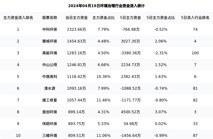 从主力资金流向来看,环境治理行业今日主力资金流入18.73亿元,在所有申万二级行业中排名:73/131。