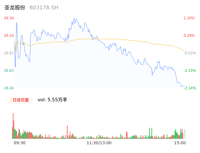 04月08日,圣龙股份收报28.40,股价涨幅-2.14%,成交金额1.60亿元,换手率2.35%。