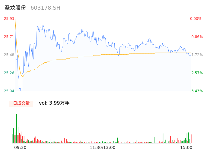 04月22日,圣龙股份收报25.49,股价涨幅-1.70%,成交金额1.02亿元,换手率1.69%。