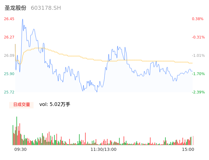 04月19日,圣龙股份收报25.93,股价涨幅-1.59%,成交金额1.30亿元,换手率2.12%。