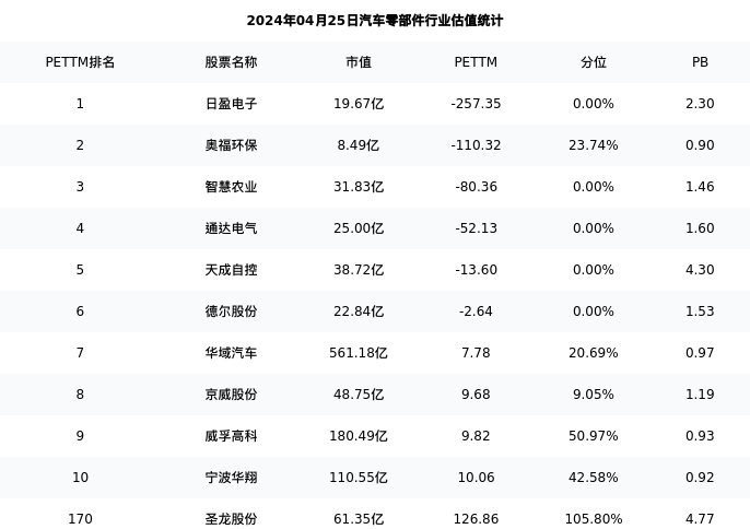 从估值角度看:圣龙股份最新市盈率PETTM为126.86,在行业内排名164/214,处于105.80分位。