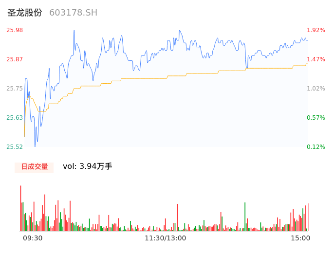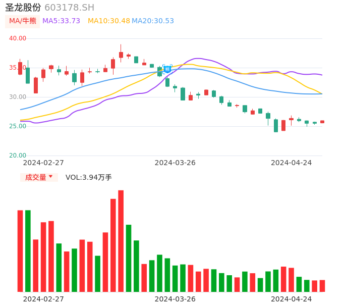 04月24日,圣龙股份收报25.95,股价涨幅1.80%,成交金额1.02亿元,换手率1.67%。