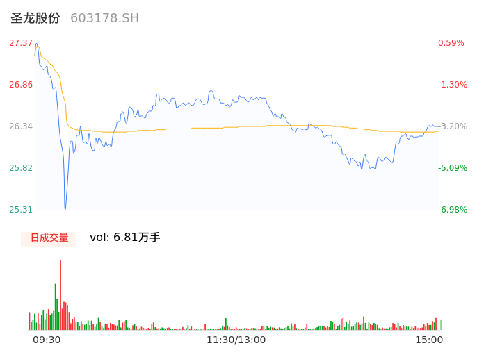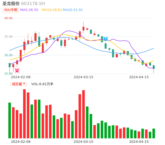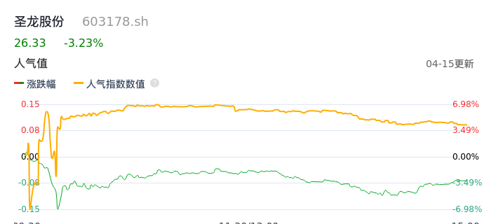04月15日,圣龙股份收报26.33,股价涨幅-3.23%,成交金额1.79亿元,换手率2.88%。