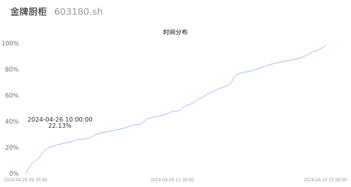 根据成交分布分析,该股票当天放量成交,成交清淡。时间上看,早盘前半小时成交量占据当天总成交量的22.13%;价格上看,成交呈现中间峰。成交分布分析主要研究股票成交的分布特性,不具有预测功能,请知悉。