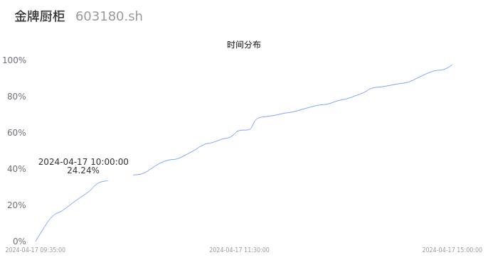根据成交分布分析,该股票当天放量成交,成交清淡。时间上看,早盘前半小时成交量占据当天总成交量的24.24%;价格上看,成交呈现中间峰。成交分布分析主要研究股票成交的分布特性,不具有预测功能,请知悉。