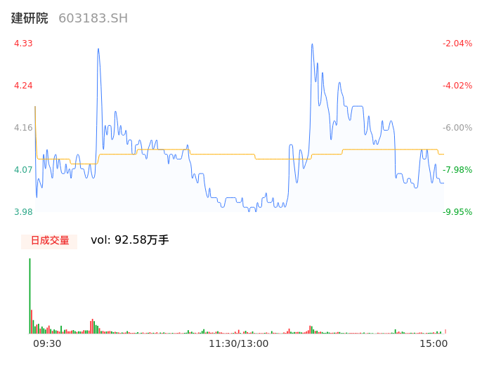 04月19日,建研院收报4.06,股价涨幅-8.14%,成交金额3.80亿元,换手率18.48%。