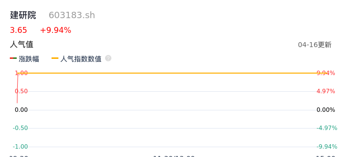 04月16日,建研院收报3.65,股价涨幅9.94%,成交金额7836.43万元,换手率4.30%。
