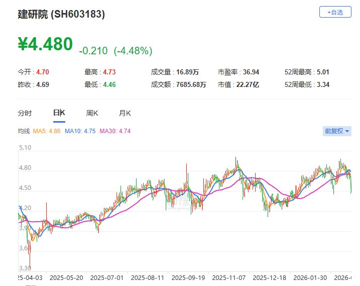 A股异动丨建研院跌逾4% 股东吴其超拟减持不超250万股公司股份