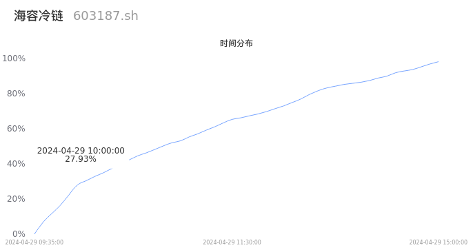 根据成交分布分析,该股票当天缩量成交,成交清淡。时间上看,早盘前半小时成交量占据当天总成交量的27.93%;价格上看,成交呈现中间峰。成交分布分析主要研究股票成交的分布特性,不具有预测功能,请知悉。