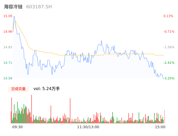 04月16日,海容冷链收报14.58,股价涨幅-3.25%,成交金额7739.55万元,换手率1.36%。