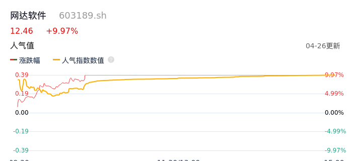 04月26日,网达软件收报12.46,股价涨幅9.97%,成交金额1.16亿元,换手率3.54%。