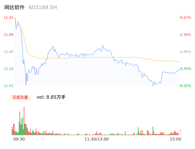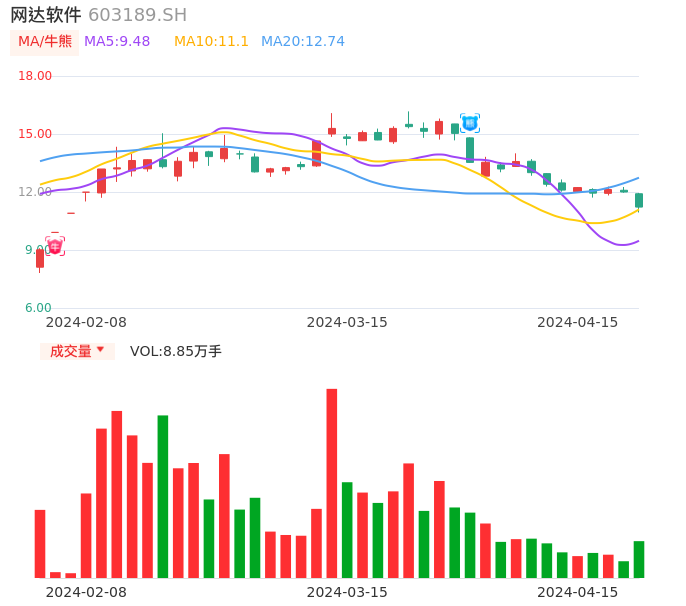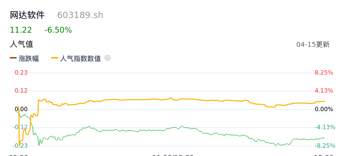 04月15日,网达软件收报11.22,股价涨幅-6.50%,成交金额1.00亿元,换手率3.28%。