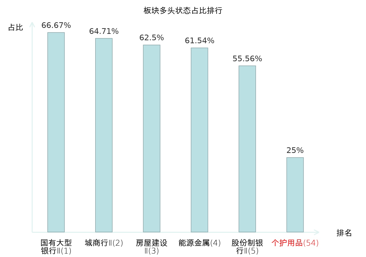 全市场所有行业板块中主力多头状态占比排名中,国有大型银行Ⅱ板块位居第一。普钢板块名次提升最快,较昨日上升65位。