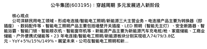 值得注意的是:2024年09月甬兴证券的黄骥/李瑶芝/吴东炬分析师,首次发布关于公牛集团的研究报告,标题为:公牛集团(603195):穿越周期 多元发展进入新阶段。