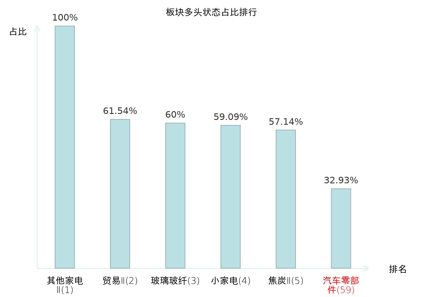 全市场所有行业板块中主力多头状态占比排名中,其他家电Ⅱ板块位居第一。摩托车及其他板块名次提升最快,较昨日上升76位。